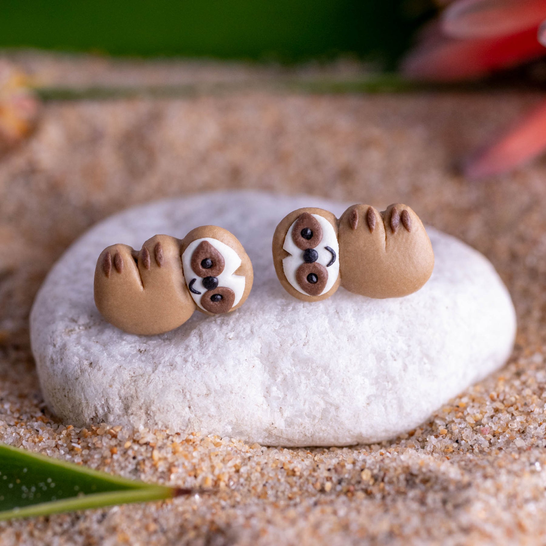Each sloth charm is lovingly sculpted by hand, ensuring that every pair of earrings is unique and carries its own special charm. From their endearing expressions to their relaxed postures, these subtle yet sweet studs capture the essence of sloths, making them a true delight to wear.